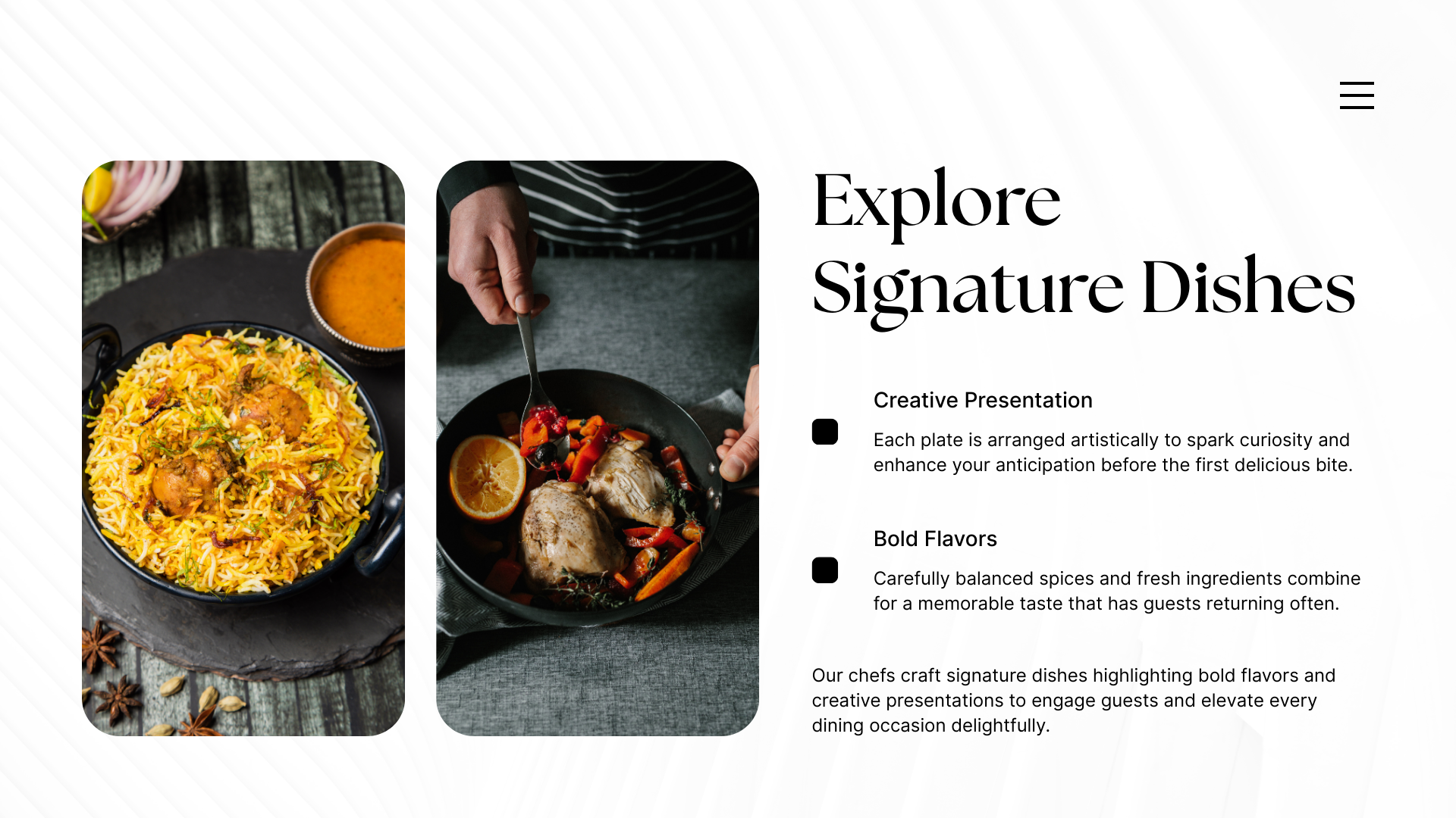 • Tell the story behind the food: Share the origin of the dish, the royal kitchen tradition, the ingredients — it adds depth to the food.